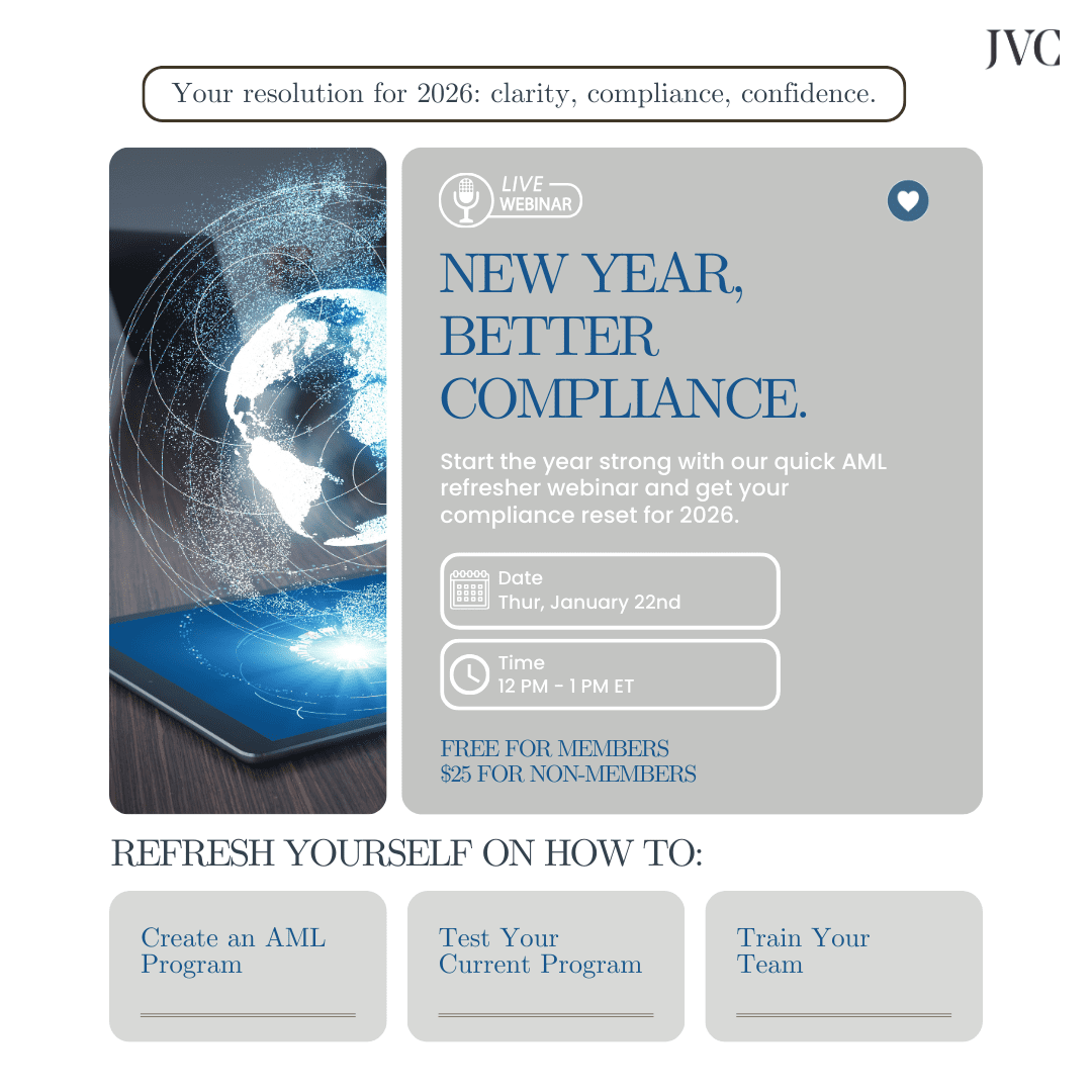Join members of the JVC legal team for JVC’s Quarterly Compliance Briefing, a high-level update and discussion tailored specifically for the C-suite and top level executive team members. This briefing hits on the latest in legal and compliance, with summaries of JVC’s recent activity and updates on important jewelry industry topics such as advertising regulations, supply chain assurance, AML, responsible sourcing, and more. Tune in to hear JVC (and often special guest speakers) help you focus on the topics you need to know to make thoughtful business decisions.